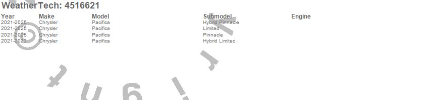 Below is an abbreviated list of applications for the FloorLiner DigitalFit.Pacifica, Chrysler, 2026, 2025, 2024, 2023, 2022, 2021