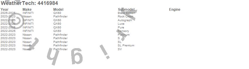 Below is an abbreviated list of applications for the FloorLiner DigitalFit.Pathfinder, QX60, INFINITI, Nissan, 2026, 2025, 2024, 2023, 2022