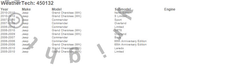 Below is an abbreviated list of applications for the FloorLiner DigitalFit.Commander, Grand Cherokee (WK), Jeep, 2010, 2009, 2008, 2007, 2006, 2005