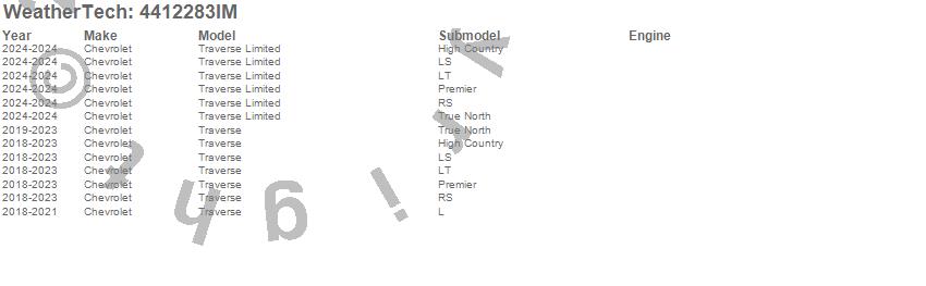 Below is an abbreviated list of applications for the FloorLiner HP.Traverse, Traverse Limited, Chevrolet, 2024, 2023, 2022, 2021, 2020, 2019, 2018