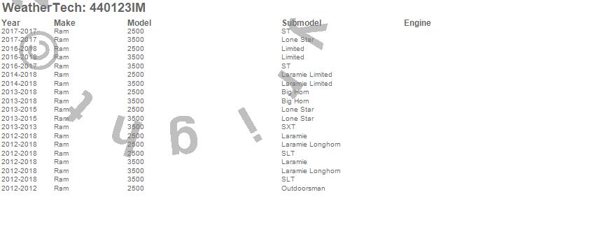 Below is an abbreviated list of applications for the FloorLiner HP.2500, 3500, Ram, 2018, 2017, 2016, 2015, 2014, 2013, 2012