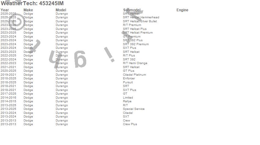Below is an abbreviated list of applications for the FloorLiner HP.Durango, Dodge, 2026, 2025, 2024, 2023, 2022, 2021, 2020, 2019, 2018, 2017, 2016, 2015, 2014, 2013