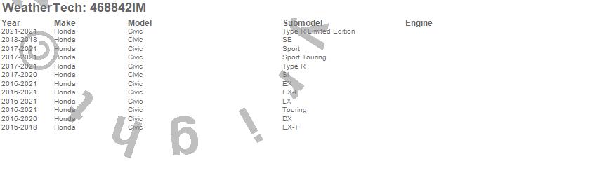 Below is an abbreviated list of applications for the FloorLiner HP.Civic, Honda, 2021, 2020, 2019, 2018, 2017, 2016