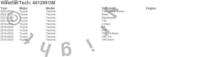 Below is an abbreviated list of applications for the FloorLiner HP.Tacoma, Toyota, 2023, 2022, 2021, 2020, 2019, 2018