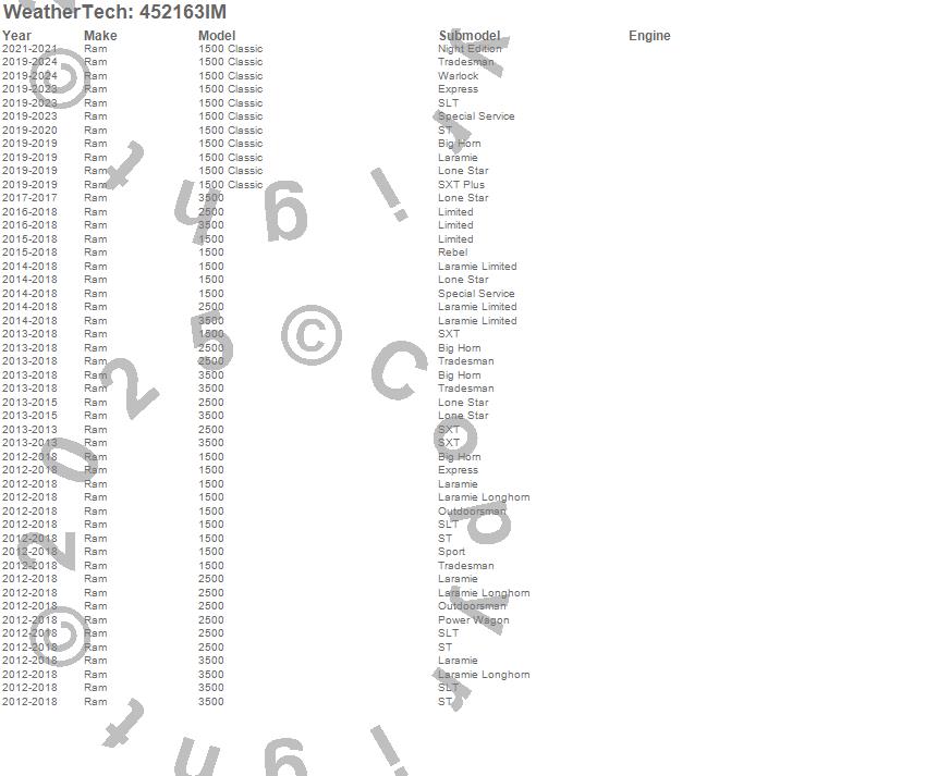 Below is an abbreviated list of applications for the FloorLiner HP.1500, 1500 Classic, 2500, 3500, Ram, 2024, 2023, 2022, 2021, 2020, 2019, 2018, 2017, 2016, 2015, 2014, 2013, 2012
