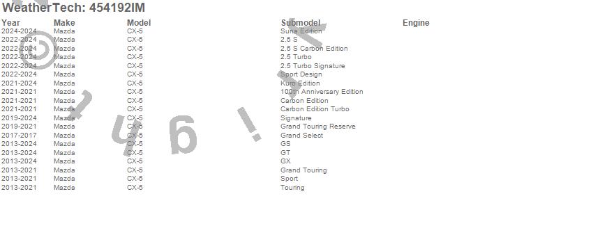 Below is an abbreviated list of applications for the FloorLiner HP.CX-5, Mazda, 2025, 2024, 2023, 2022, 2021, 2020, 2019, 2018, 2017, 2016, 2015, 2014, 2013