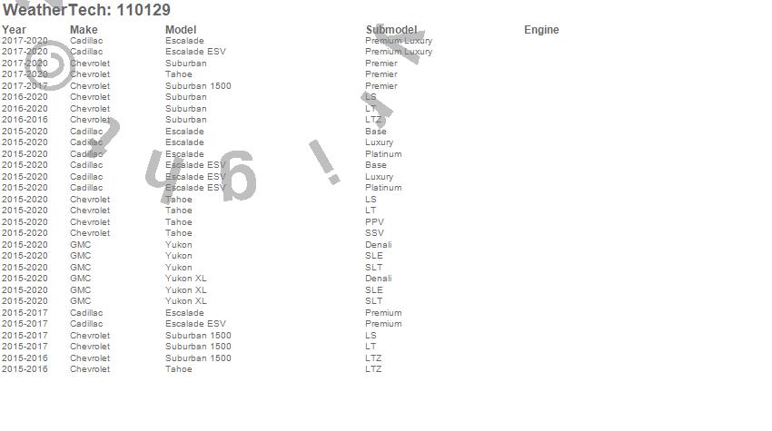 Below is an abbreviated list of applications for the MudFlap No-Drill DigitalFit.Escalade, Escalade ESV, Suburban, Suburban 1500, Tahoe, Yukon, Yukon XL, Cadillac, Chevrolet, GMC, 2020, 2019, 2018, 2017, 2016, 2015