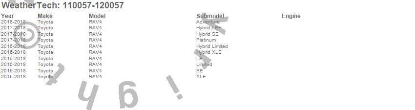 Below is an abbreviated list of applications for the MudFlap No-Drill DigitalFit MudFlap Kit.RAV4, Toyota, 2018, 2017, 2016