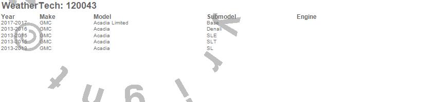 Below is an abbreviated list of applications for the MudFlap No-Drill DigitalFit.Acadia, Acadia Limited, GMC, 2017, 2016, 2015, 2014, 2013