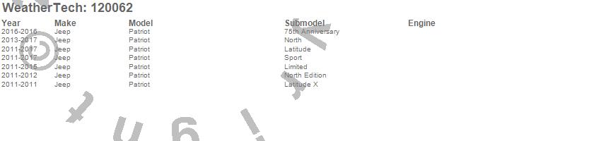 Below is an abbreviated list of applications for the MudFlap No-Drill DigitalFit.Patriot, Jeep, 2017, 2016, 2015, 2014, 2013, 2012, 2011