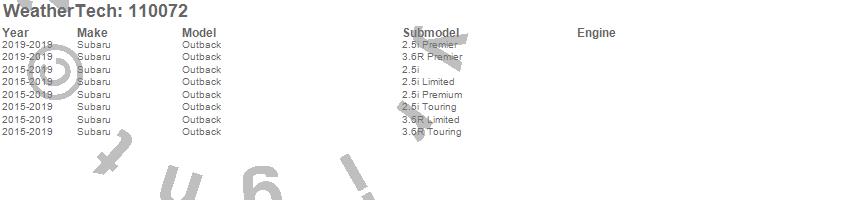 Below is an abbreviated list of applications for the MudFlap No-Drill DigitalFit.Outback, Subaru, 2019, 2018, 2017, 2016, 2015