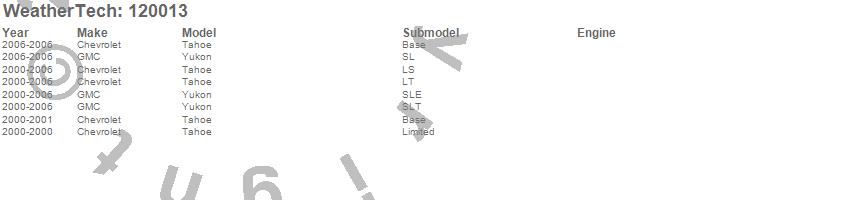 Below is an abbreviated list of applications for the MudFlap No-Drill DigitalFit.Tahoe, Yukon, Chevrolet, GMC, 2006, 2005, 2004, 2003, 2002, 2001, 2000
