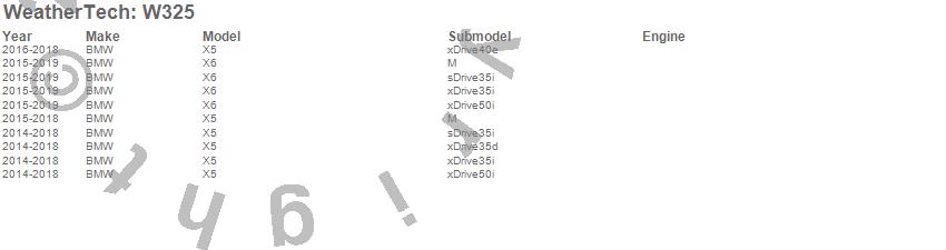 Below is an abbreviated list of applications for the All Weather Floor Mats.X5, X6, BMW, 2019, 2018, 2017, 2016, 2015, 2014