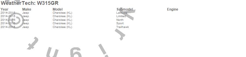 Below is an abbreviated list of applications for the All Weather Floor Mats.Cherokee (KL), Jeep, 2015, 2014