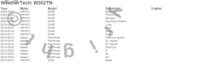 Below is an abbreviated list of applications for the All Weather Floor Mats.JX35, Pathfinder, QX60, INFINITI, Nissan, 2020, 2019, 2018, 2017, 2016, 2015, 2014, 2013