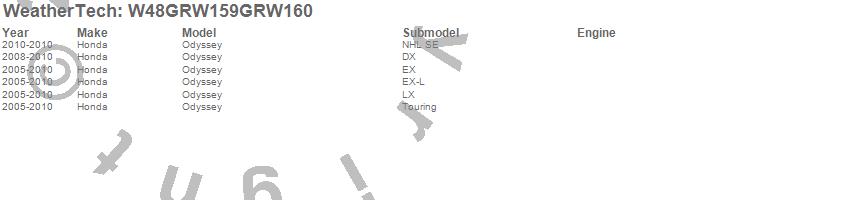 Below is an abbreviated list of applications for the All Weather Floor Mats.Odyssey, Honda, 2010, 2009, 2008, 2007, 2006, 2005