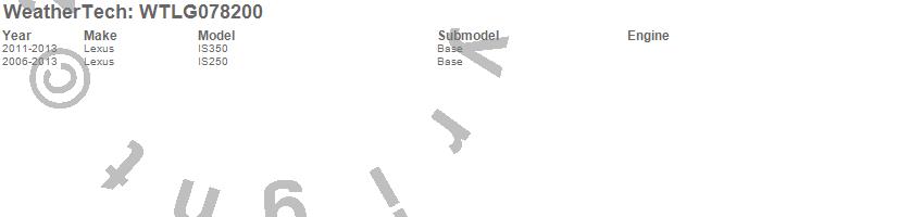 Below is an abbreviated list of applications for the All Weather Floor Mats.IS250, IS350, Lexus, 2013, 2012, 2011, 2010, 2009, 2008, 2007, 2006