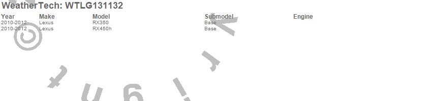 Below is an abbreviated list of applications for the All Weather Floor Mats.RX350, RX450h, Lexus, 2012, 2011, 2010