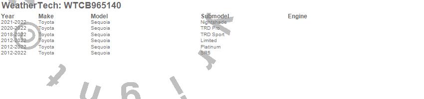 Below is an abbreviated list of applications for the All Weather Floor Mats.Sequoia, Toyota, 2022, 2021, 2020, 2019, 2018, 2017, 2016, 2015, 2014, 2013, 2012