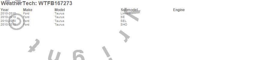 Below is an abbreviated list of applications for the All Weather Floor Mats.Taurus, Ford, 2010