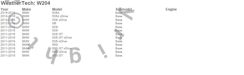 Below is an abbreviated list of applications for the All Weather Floor Mats.528i, 528i xDrive, 535d, 535d xDrive, 535i, 535i GT, 535i GT xDrive, 535i xDrive, 550i, 550i GT, 550i GT xDrive, 550i xDrive, M5, BMW, 2016, 2015, 2014, 2013, 2012, 2011