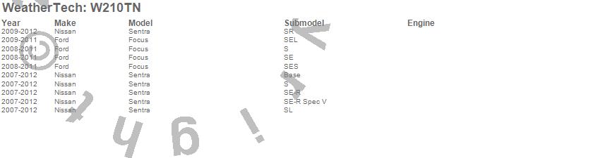 Below is an abbreviated list of applications for the All Weather Floor Mats.Focus, Sentra, Ford, Nissan, 2012, 2011, 2010, 2009, 2008, 2007