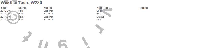 Below is an abbreviated list of applications for the All Weather Floor Mats.Explorer, Ford, 2014, 2013, 2012, 2011