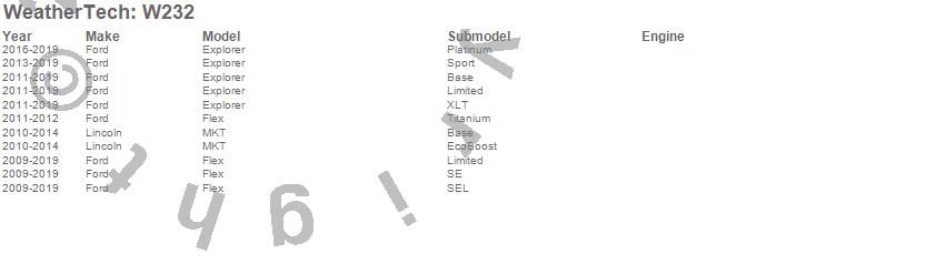 Below is an abbreviated list of applications for the All Weather Floor Mats.Explorer, Flex, MKT, Ford, Lincoln, 2019, 2018, 2017, 2016, 2015, 2014, 2013, 2012, 2011, 2010, 2009
