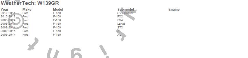 Below is an abbreviated list of applications for the All Weather Floor Mats.F-150, Ford, 2014, 2013, 2012, 2011, 2010, 2009