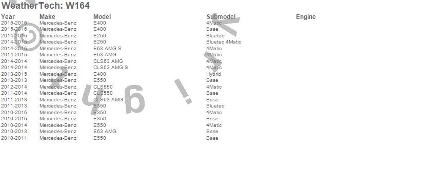Below is an abbreviated list of applications for the All Weather Floor Mats.CLS550, CLS63 AMG, CLS63 AMG S, E250, E350, E400, E550, E63 AMG, E63 AMG S, Mercedes-Benz, 2016, 2015, 2014, 2013, 2012, 2011, 2010