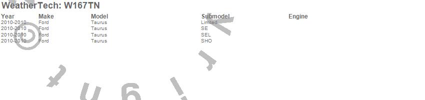 Below is an abbreviated list of applications for the All Weather Floor Mats.Taurus, Ford, 2010