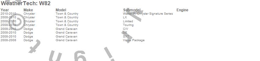Below is an abbreviated list of applications for the All Weather Floor Mats.Grand Caravan, Town & Country, Chrysler, Dodge, 2010, 2009, 2008