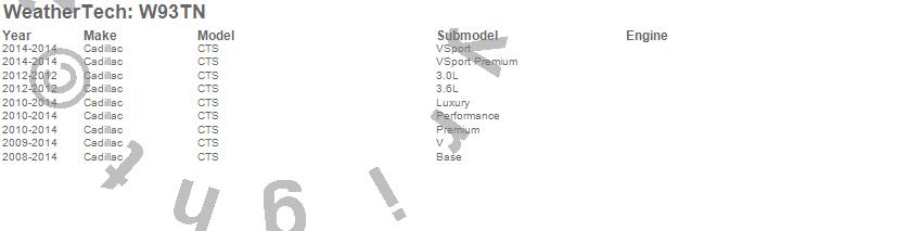 Below is an abbreviated list of applications for the All Weather Floor Mats.CTS, Cadillac, 2014, 2013, 2012, 2011, 2010, 2009, 2008