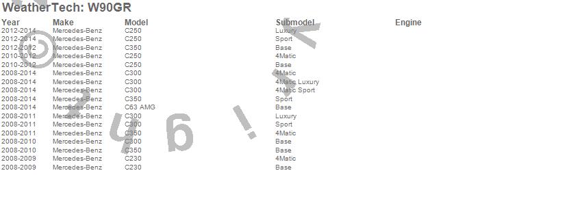 Below is an abbreviated list of applications for the All Weather Floor Mats.C230, C250, C300, C350, C63 AMG, Mercedes-Benz, 2014, 2013, 2012, 2011, 2010, 2009, 2008