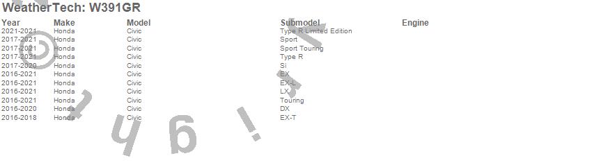 Below is an abbreviated list of applications for the All Weather Floor Mats.Civic, Honda, 2021, 2020, 2019, 2018, 2017, 2016
