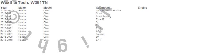 Below is an abbreviated list of applications for the All Weather Floor Mats.Civic, Honda, 2021, 2020, 2019, 2018, 2017, 2016
