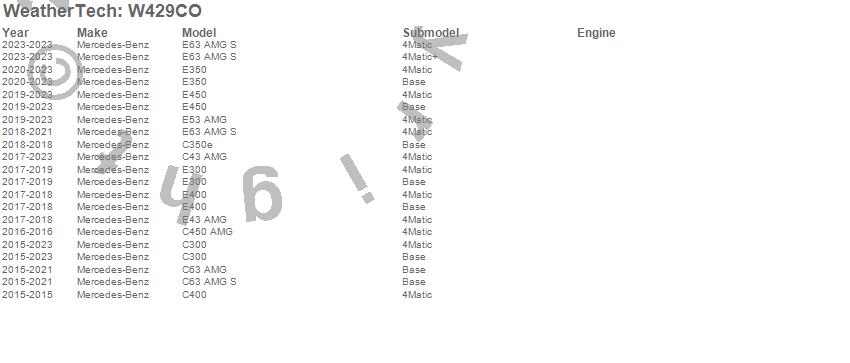Below is an abbreviated list of applications for the All Weather Floor Mats.C300, C350e, C400, C43 AMG, C450 AMG, C63 AMG, C63 AMG S, E300, E350, E400, E43 AMG, E450, E53 AMG, E63 AMG S, Mercedes-Benz, 2023, 2022, 2021, 2020, 2019