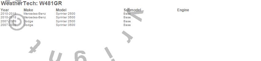Below is an abbreviated list of applications for the All Weather Floor Mats.Sprinter 2500, Sprinter 3500, Dodge, Mercedes-Benz, 2018, 2017, 2016, 2015, 2014, 2013, 2012, 2011, 2010, 2009, 2008, 2007