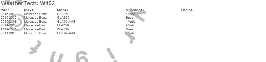 Below is an abbreviated list of applications for the All Weather Floor Mats.CLA250, CLA45 AMG, GLA250, GLA45 AMG, Mercedes-Benz, 2020, 2019, 2018, 2017, 2016, 2015, 2014