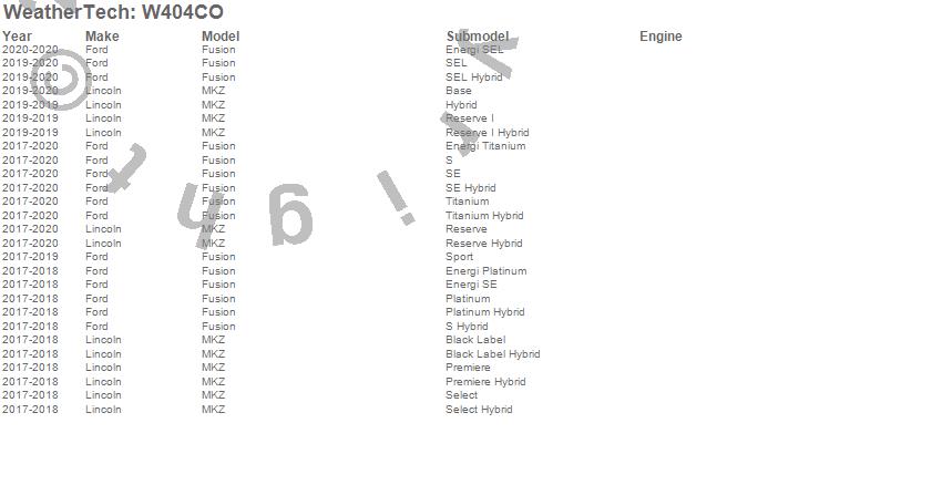 Below is an abbreviated list of applications for the All Weather Floor Mats.Fusion, MKZ, Ford, Lincoln, 2020, 2019, 2018, 2017