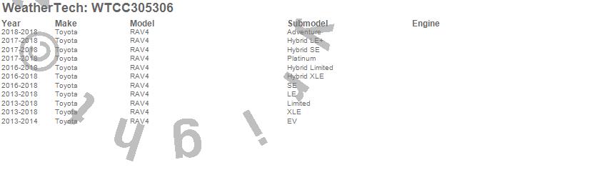 Below is an abbreviated list of applications for the All Weather Floor Mats.RAV4, Toyota, 2018, 2017, 2016, 2015, 2014, 2013