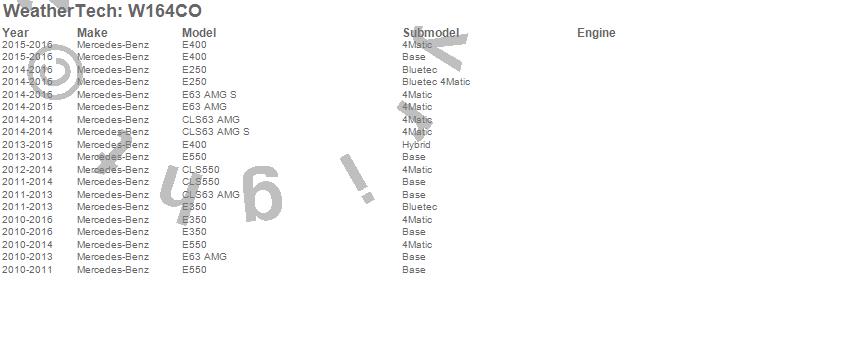 Below is an abbreviated list of applications for the All Weather Floor Mats.CLS550, CLS63 AMG, CLS63 AMG S, E250, E350, E400, E550, E63 AMG, E63 AMG S, Mercedes-Benz, 2016, 2015, 2014, 2013, 2012, 2011, 2010