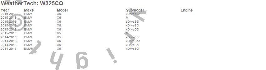 Below is an abbreviated list of applications for the All Weather Floor Mats.X5, X6, BMW, 2019, 2018, 2017, 2016, 2015, 2014