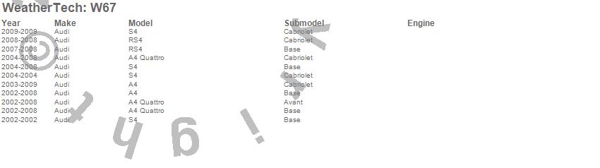 Below is an abbreviated list of applications for the All Weather Floor Mats.A4, A4 Quattro, RS4, S4, Audi, 2009, 2008, 2007, 2006, 2005, 2004, 2003, 2002