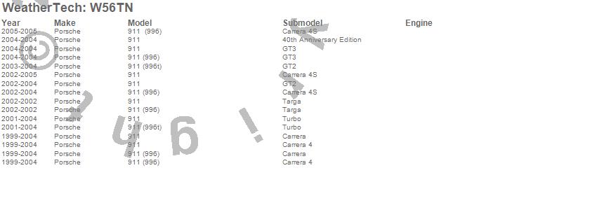 Below is an abbreviated list of applications for the All Weather Floor Mats.911, Porsche, 2005, 2004, 2003, 2002, 2001, 2000, 1999