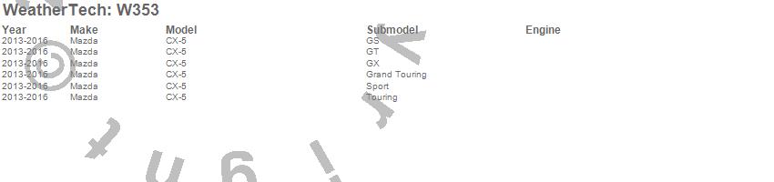 Below is an abbreviated list of applications for the All Weather Floor Mats.CX-5, Mazda, 2016, 2015, 2014, 2013
