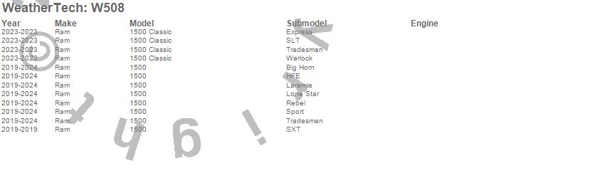 Below is an abbreviated list of applications for the All Weather Floor Mats.1500, 1500 Classic, Ram, 2025, 2024, 2023, 2022, 2021, 2020, 2019