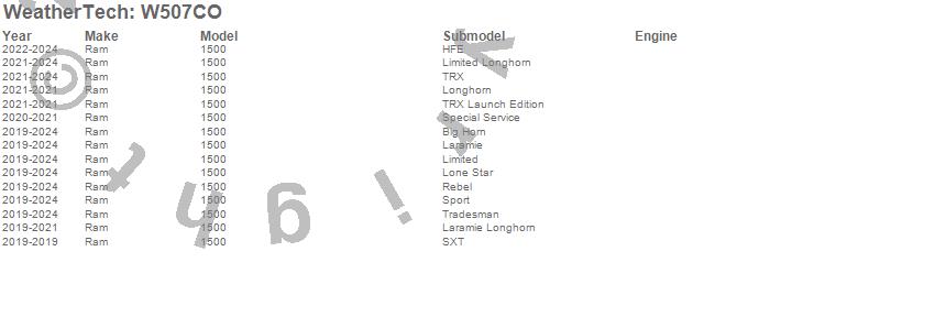 Below is an abbreviated list of applications for the All Weather Floor Mats.1500, Ram, 2026, 2025, 2024, 2023, 2022, 2021, 2020, 2019