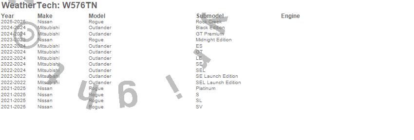 Below is an abbreviated list of applications for the All Weather Floor Mats.Outlander, Rogue, Mitsubishi, Nissan, 2026, 2025, 2024, 2023, 2022, 2021