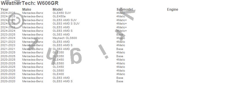 Below is an abbreviated list of applications for the All Weather Floor Mats.GLE350, GLE400, GLE450, GLE450 SUV, GLE450e, GLE53 AMG, GLE53 AMG SUV, GLE580, GLE63 AMG, GLE63 AMG S, GLE63 AMG S SUV, GLS450, GLS580, GLS63 AMG, Maybach GLS600, Mercedes-Benz, 2025, 2024, 2023, 2022